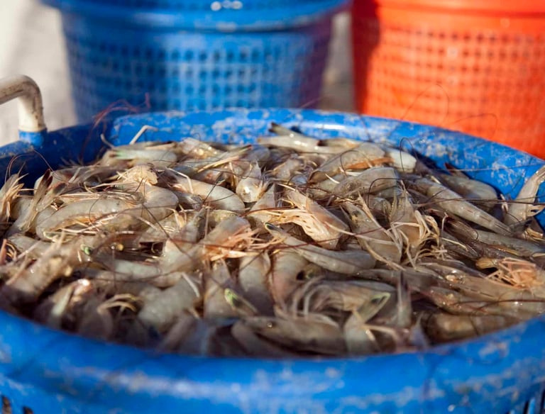 Live shrimp, caught locally in Beaufort, Hilton Head, Fripp Island and Charleston.